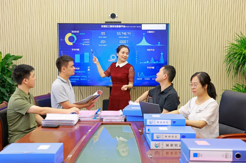 萍乡市安源区工程项目大数据监督平台对各环节的异常行为进行预警,有效提升监督质效。图为该区纪委监委工作人员对预警信息进行研判。 邓建萍 摄