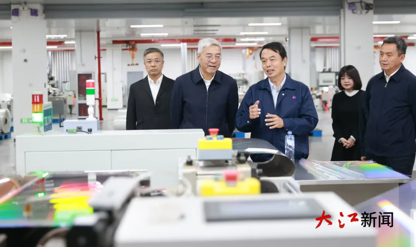 南昌光群雷射科技公司是全球镭射全息防伪产品整合最完整的材料供应商。尹弘察看企业展厅和生产车间,与企业负责人深入交流。企业家对营商环境给予肯定,尹弘指出,要积极融入和服务全国统一大市场建设,持续加强招商引资、优化营商环境,设身处地为企业着想,创新服务举措,不断提升企业满意度。尹弘希望企业坚定在江西发展信心,持续扩大投资,深耕细分领域,推出更多高附加值产品,助推产业高质量发展。