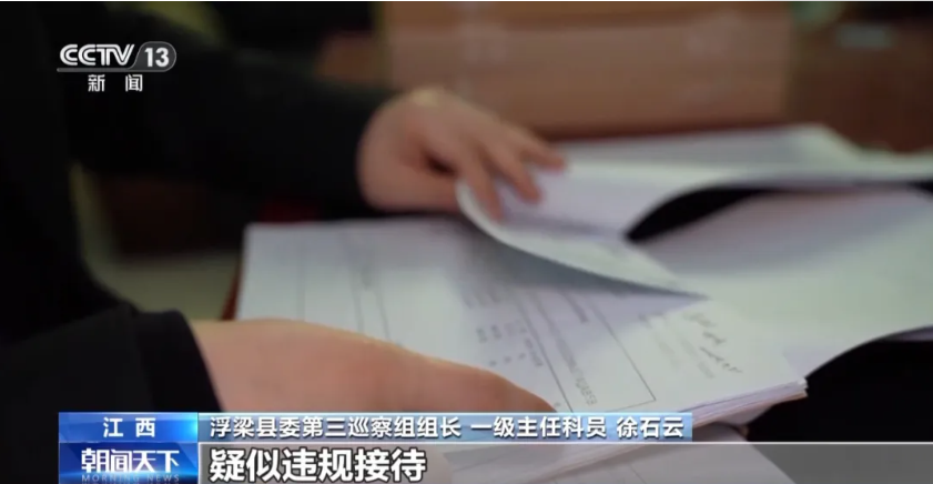 浮梁县委第三巡察组组长 一级主任科员 徐石云:县委第三巡察组在查阅财务凭证过程中,发现该单位在2022年12月,连续2天安排省内某考察组4次公务接待,连续3天3次接待同一乡镇的工作人员,疑似违规接待。经巡察组集体研判并报县委巡察工作领导小组领导同意,上述情况作为问题线索移送县纪委监委。
