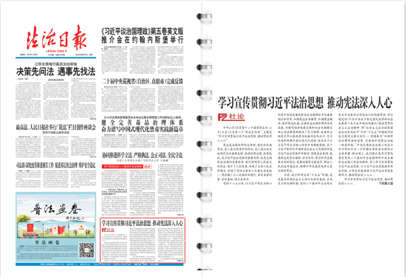 今年12月4日是第十二个国家宪法日,12月1日至7日是第八个“宪法宣传周”,主题是“学习宣传贯彻习近平法治思想,推动宪法深入人心”。